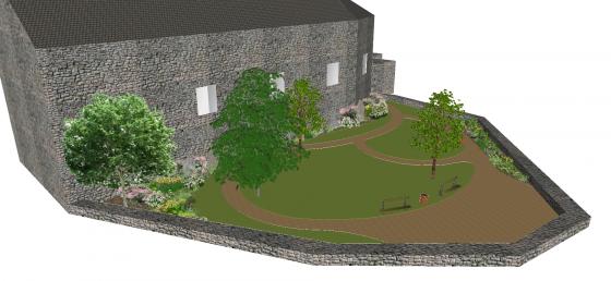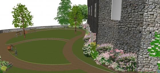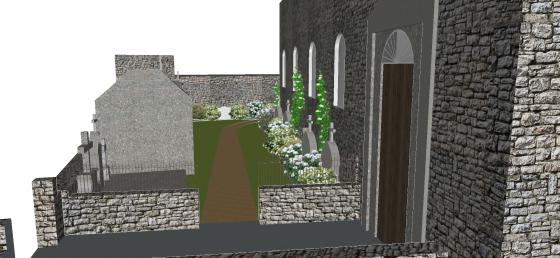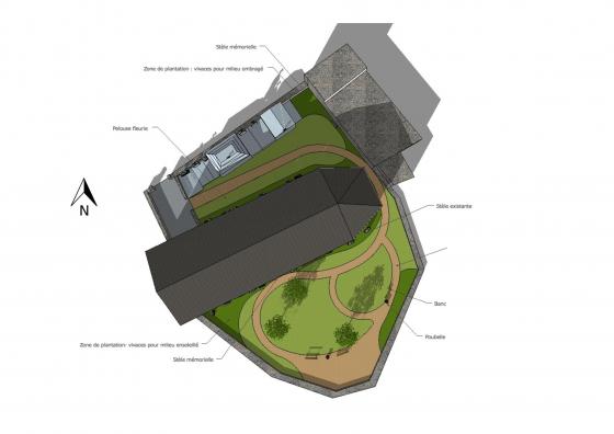 Le projet veillera en premier lieu à disposer d’un cheminement adapté au PMR pour permettre une libre circulation autour de l’église.  Quelques arbres et des zones de plantation viendront égayer le cheminement.  L’entrée du cimetière comportera un ensemble d’arbustes adaptés pour milieu ombragé, contrairement à l’autre partie du cimetière bien exposée au sud.